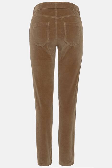 Samthose Tina mit seitlichen Biesen. Edles Trendmaterial als gerade Hose mit normaler Leibhöhe. 5-Pocket, Bund mit Gürtelschlaufen, Knopf und Zipper.