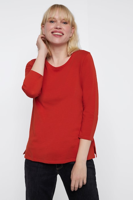 T-Shirt mit Rundhalsausschnitt, gerundetem Saum mit Seitenschlitzen und Langarm.