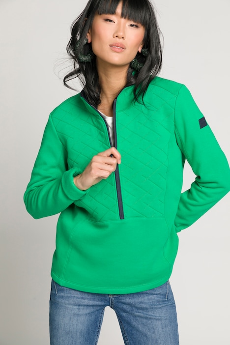 Sweatshirt, Steppeinsatz, Stehkragen, Zipper, Langarm